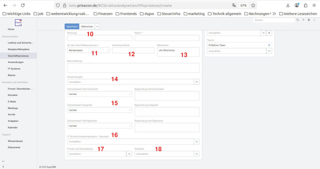 Details der Erfassung von Geschäftsprozessen und Anwendungen: Beschreibung, Risikobewertung, Zuordnung der IT-Grundschutzbausteine, Zuordnung von Verantwortlichkeiten, Terminierung und Dokumentation von Maßnahmen